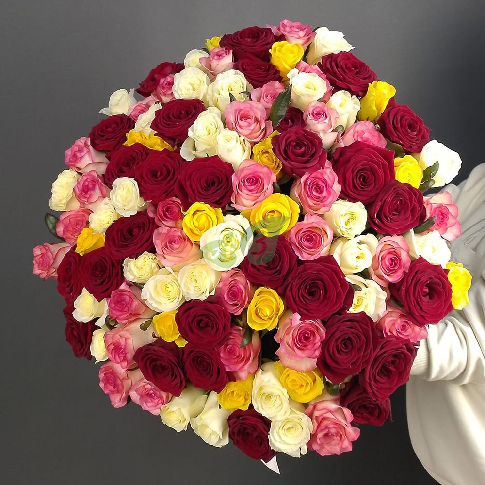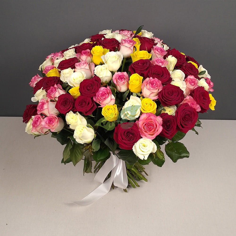 Букет из роз 101 разноцветная роза
